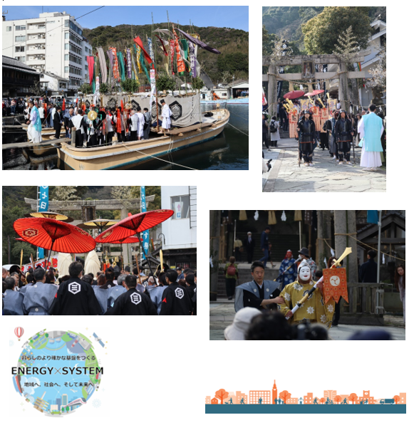 当発電所から車で約20分に位置する島根半島の東端に「美保神社」が鎮座しています。 祭神の事代主命(ことしろぬしのみこと)にまつわる祭りとして毎年4月7日に行われるのが、国譲り神話にちなんだ「青柴垣神事(あおふしがき)」です。 事代主命(恵比寿さま)が、大国主命(大黒さま)から国譲りの相談をうけ、譲ることに決定した後、自ら海中に青柴垣を作ってお隠れになったという故事にちなんだ祭りです。 訪れた地元住民や観光客は厳かな儀式を見入っていました。 ![]() |